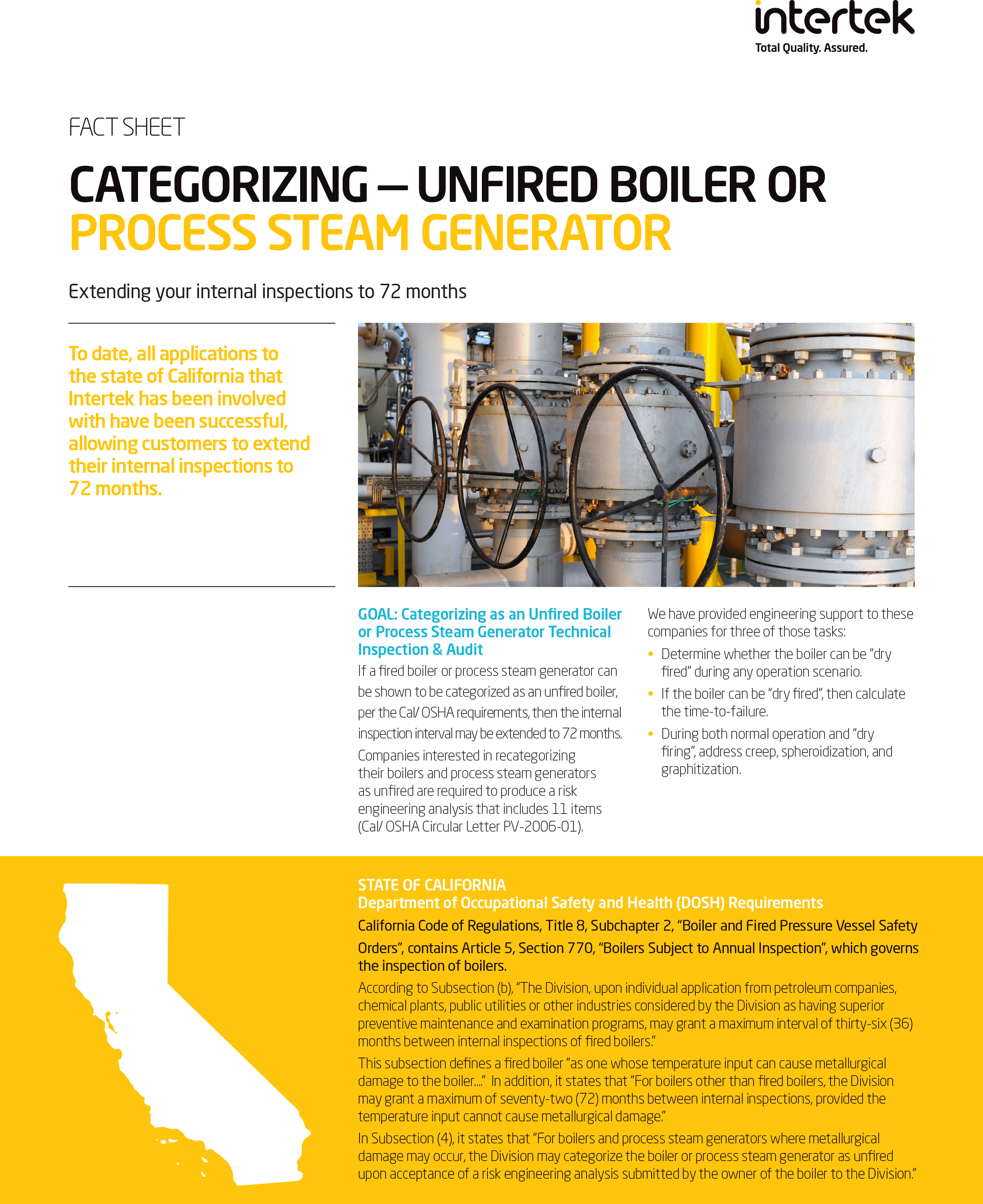 As an internationally recognized company that is leading the industry in Total Quality Assurance, we specialize in equipment performance optimization, asset integrity, and condition assessments, and our engineers and operation specialists provide condition-based monitoring services to fit your needs. With Intertek as your partner, you can rely on us to handle your CBM needs and provide you with actionable preventive and corrective maintenance plans that are scheduled at the optimal time; help ensure equipment reliability and worker safety; and reduce failure rates and unscheduled downtimes.